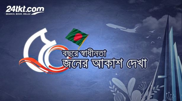 স্বাধীনতার ৫০ বছর পূর্তি উপলক্ষে সমাজের অনগ্রসর ৫০ জনকে বিনামূল্যে আকাশপথে ভ্রমণের সুযোগ করে দেবে অনলাইন টিকিট এজেন্সি ২৪ টিকিট ডটকম (https://24tkt.com/)। ‘৫০ বছরে স্বাধীনতা, ৫০ জনের আকাশ দেখা’ স্লোগানে এই আয়োজনে নির্বাচিত সবাইকে ডোমেস্টিক রিটার্ন এয়ার টিকিট দেয়া হবে।