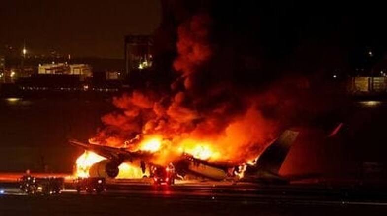 বিমানটি হোক্কাইডো থেকে টোকিওর হানেদা বিমানবন্দরে এসেছিল। ভিডিওতে দেখা যায় দমকল বাহিনীর সদস্যরা আগুন নেভানোর কাজ করছেন।