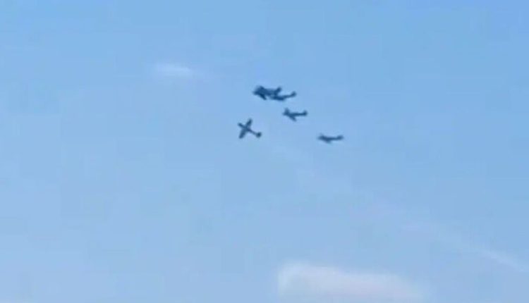 এ ঘটনার একটি ভিডিও একজন দর্শক ধারণ করেছেন। পরে তিনি সেটি সামাজিক মাধ্যমে শেয়ার করেছেন। ভিডিওতে দেখা যায়, আকাশে ছয়টি বিমান একসঙ্গে উড়ছে। এদের মধ্যে থেকে হঠাৎ একটি বিমান আরেকটির গায়ে ধাক্কা দেয়। এতে বিমানটি বিধ্বস্ত হয়ে মাটিতে পড়ে যায়।