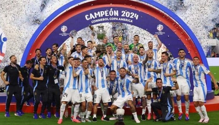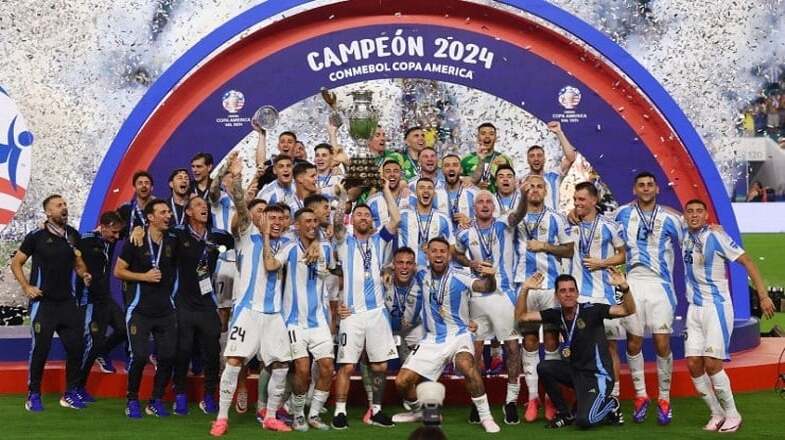 কলম্বিয়ানদের স্বপ্ন ভেঙে আবারও কোপা আমেরিকার চ্যাম্পিয়ন হলো বর্তমান বিশ্বচ্যাম্পিয়ন আর্জেন্টিনা। কোপা আমেরিকার ৪৮তম আসরের ফাইনালে আজ শ্বাসরুদ্ধকর ম্যাচে কলম্বিয়াকে হারিয়ে ১৬তম শিরোপা জিতেছে আর্জেন্টিনা। এই জয়ে একটি ত্রিমুকুটও পেয়ে গেলেন মেসিরা। মহাদেশীয় শিরোপা, বিশ্বকাপ, আবার মহাদেশীয় শিরোপা স্পেনের পর এই ত্রিমুকুট জেতা দ্বিতীয় দল এখন আর্জেন্টিনা। ২০২১ সালে কোপা আমেরিকার পর ২০২২ সালে কাতার বিশ্বকাপ জেতা আর্জেন্টিনা জিতল ২০২৪ সালের কোপা আমেরিকা।