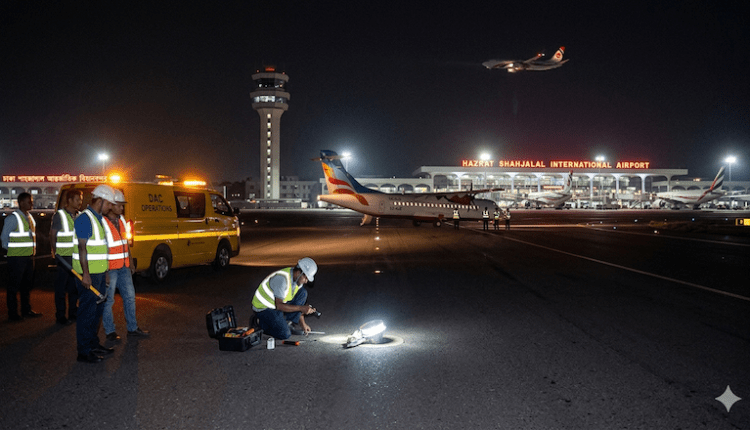 ঢাকার হজরত শাহজালাল আন্তর্জাতিক বিমানবন্দরের রানওয়ের একটি গুরুত্বপূর্ণ লাইট নষ্ট হয়ে গিয়েছিল।